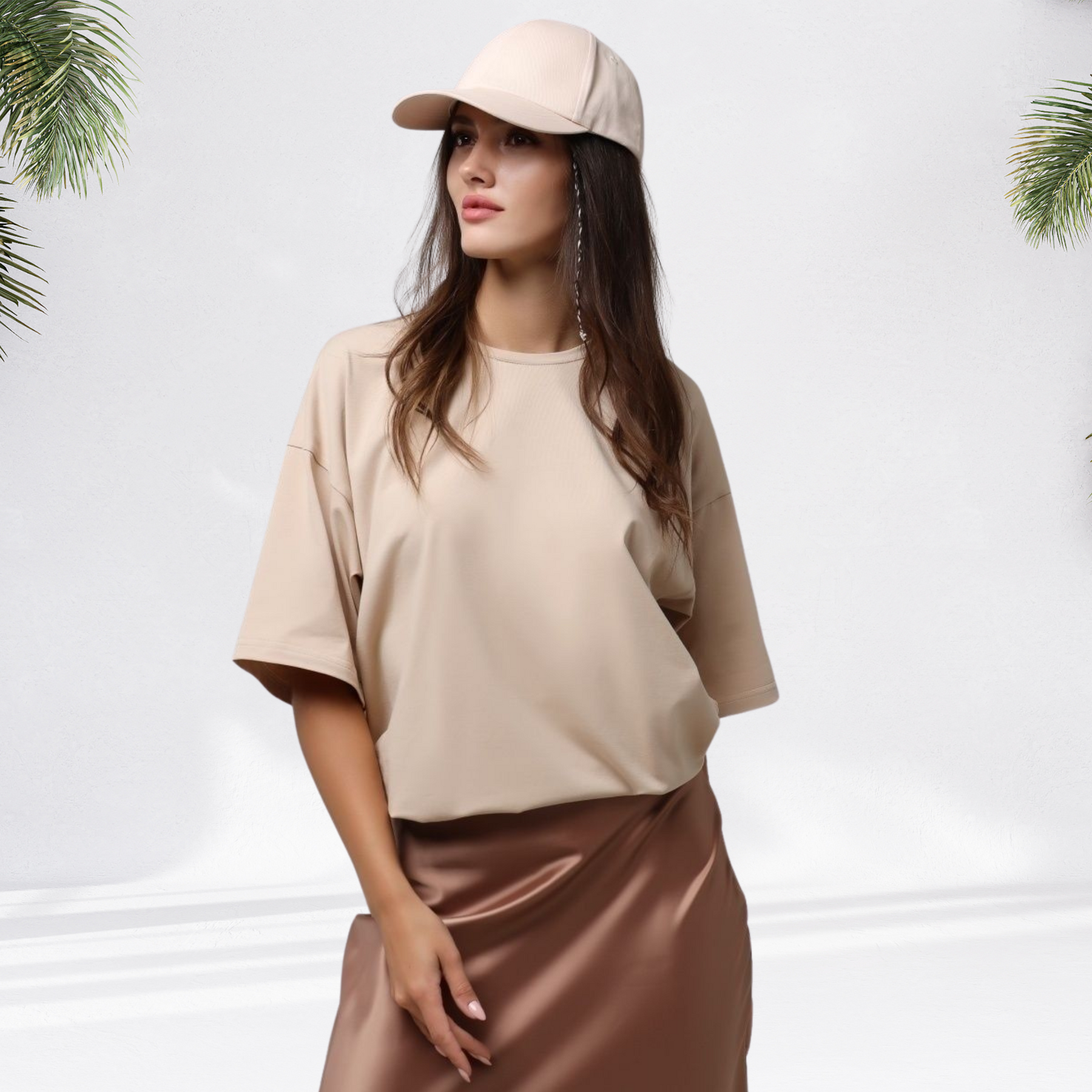 Esta camiseta será tu nuevo básico de cada día. Su corte oversize, el tejido de algodón suave y el diseño minimalista la convierten en una prenda atemporal que puedes combinar sin límites. Llévala de forma casual con vaqueros o con una americana para un look más elegante – ¡las posibilidades son infinitas! 🤍✨